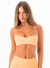 - flattering sweetheart neckline - Adjustable crossover straps - removable padding - Crafted from premium NKD fabric that feels soft, smooth, and moves with you- Features the signature Ryderwear logo on the back for an elevated finish- Ideal for low to medium impact workouts or everyday athleisure style Model is 173cm tall.